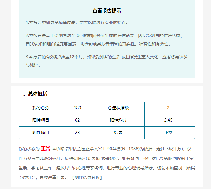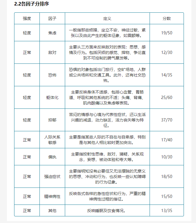 综合心理健康测评SCL90